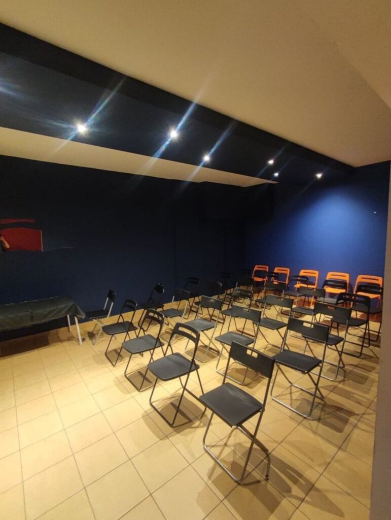 -30m2 (wykładowa) wyposażona w krzesła, stoliki, projektor, ekran,